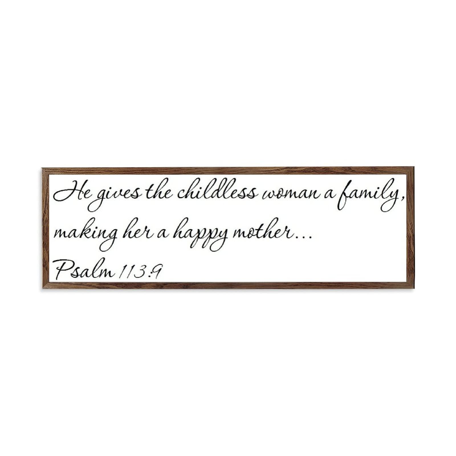Amazon Com Wooden Framed Sign Psalm 113 9 8566 Office Bedroom Living Room Wall Art He Gives The Childless Woman A Family Making Her A Happy Mother White C5 15 50cm Pp824 Home Kitchen
