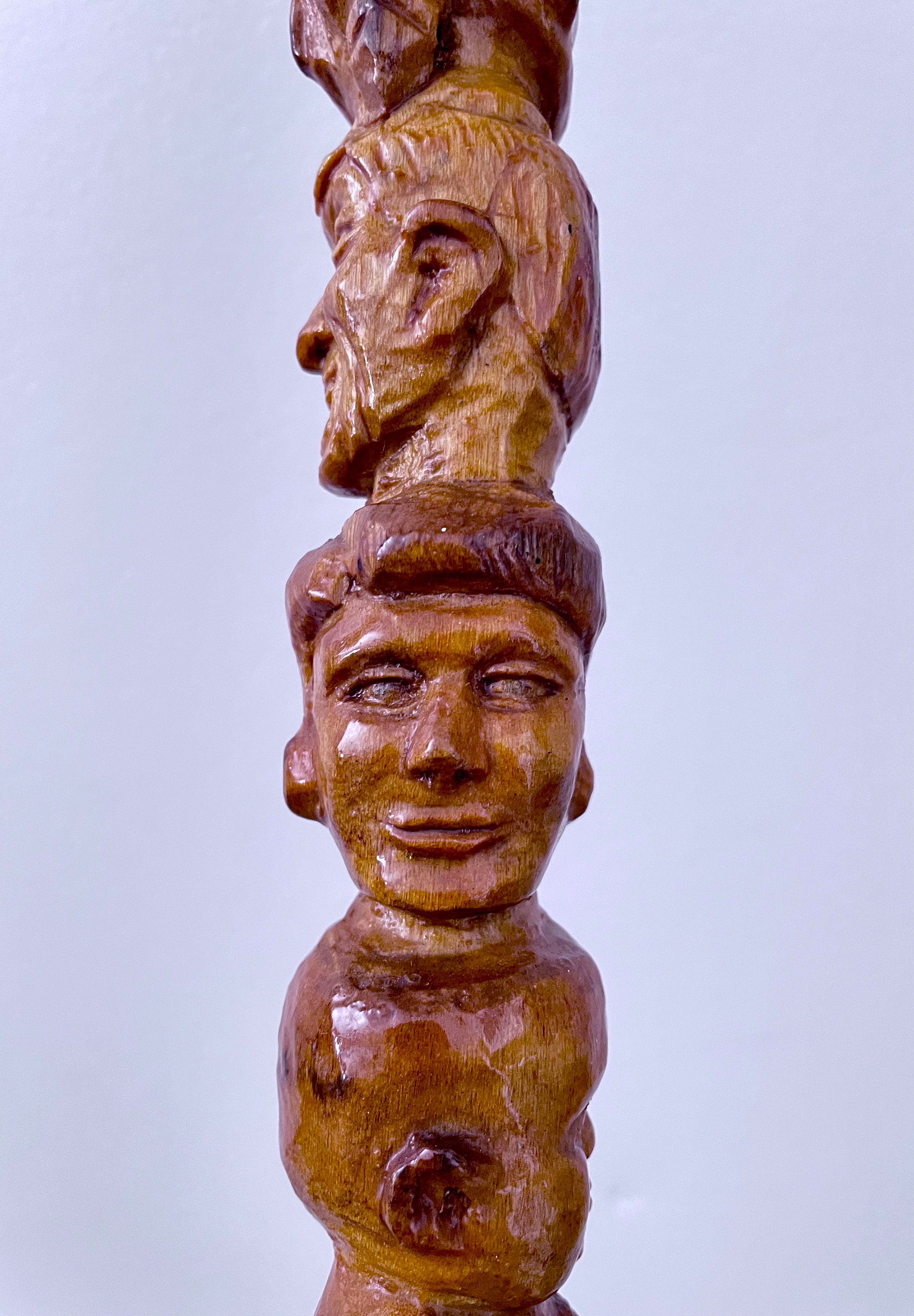 Antique Folk Art Carved Walking Stick With 13 Faces And Etsy Ireland